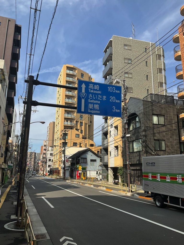 巣鴨まで3キロ、高崎まで103キロの標識がありました。