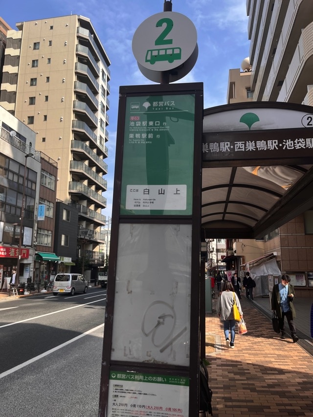 このまま巣鴨まであるのはちょっと時間が無いので、「白山下」のバス停でバスに乗ります。