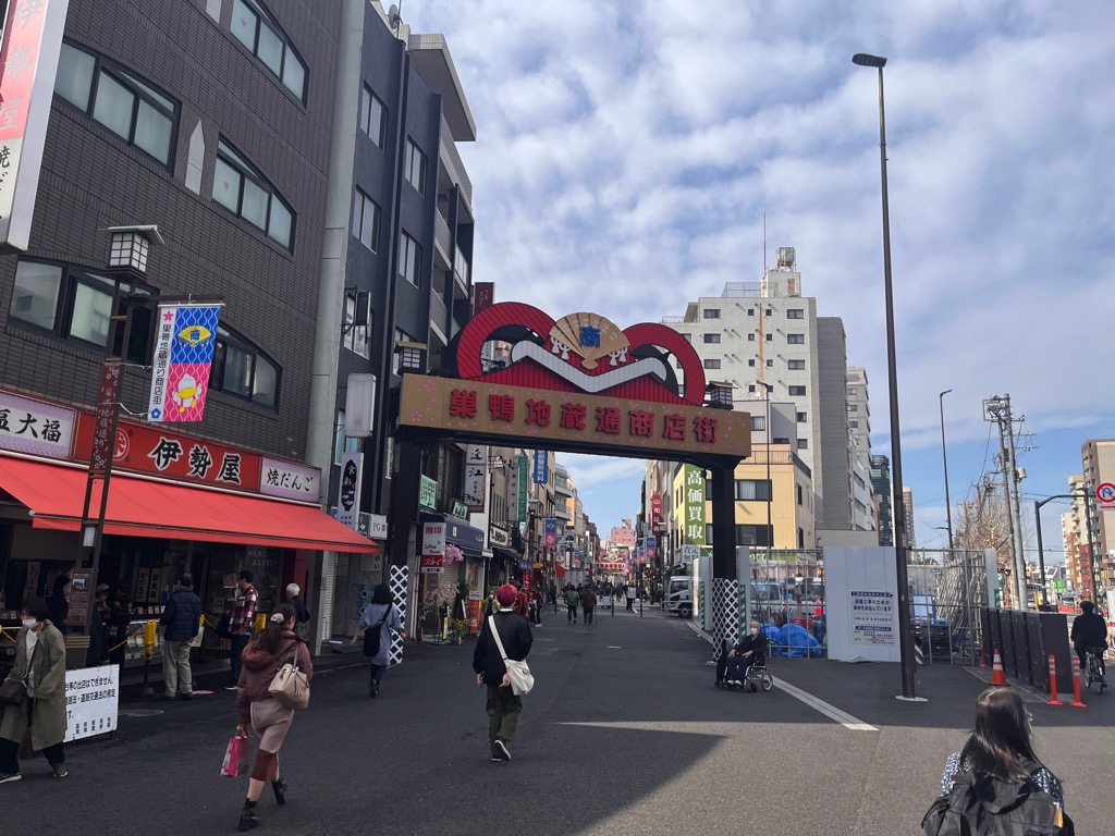 巣鴨駅で下車してかの有名な商店街を歩きます。この通りは実は中山道なのです。